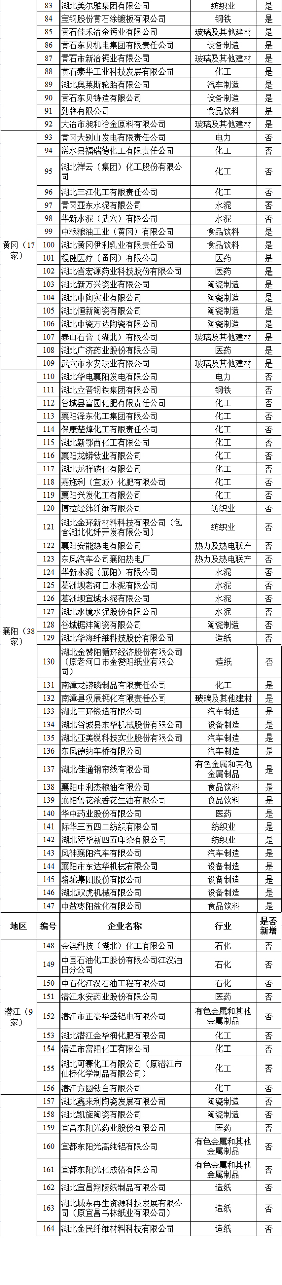 ? ? ? ? ?2、湖北省2017年納入碳排放配額管理企業清單