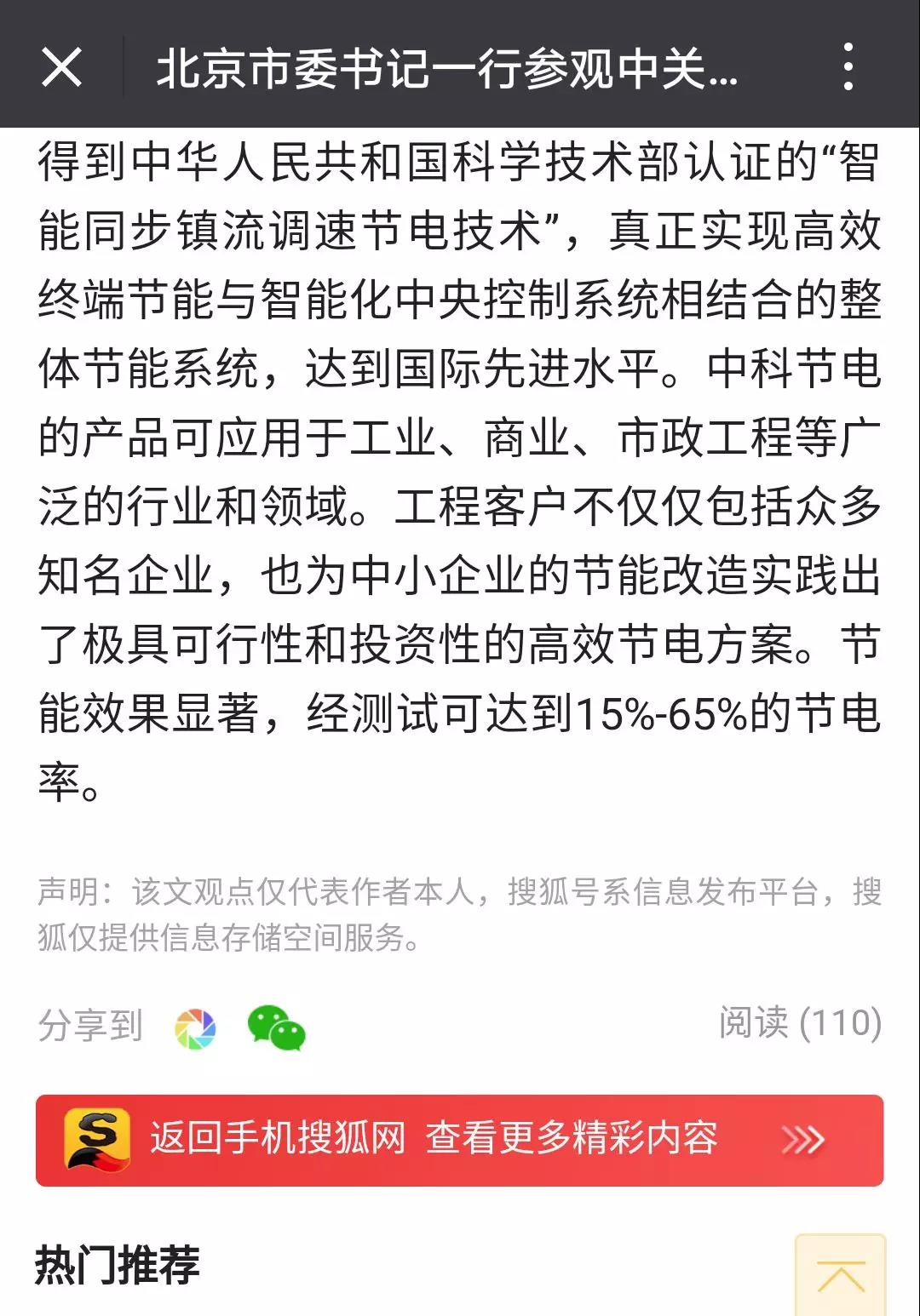厲害了!中科節(jié)電技術(shù)在科博會上備受北京領(lǐng)導關(guān)注,引搜狐新聞報道!