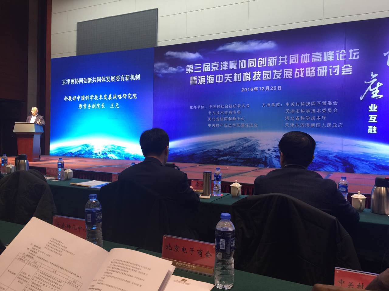 為貫徹落實京津冀協同發(fā)展的國家戰(zhàn)略,進一步助力京津冀科技產業(yè)創(chuàng)新發(fā)展,推進京津冀協同發(fā)展,推動節(jié)能環(huán)保產業(yè)的發(fā)展和創(chuàng)新,在中關村社會組織聯合會、天津市科學技術委員會等單位的支持下,由天津濱海高新技術產業(yè)開發(fā)區(qū)科技局主辦,天津中科先進技術研究院、天津高企協節(jié)能環(huán)保分會以及中關村天合科技成果轉化促進中心共同承辦的“第三屆京津冀協同創(chuàng)新共同體高峰論壇暨濱海中關村科技園發(fā)展戰(zhàn)略研討會”于12月29日圓滿落幕。