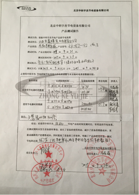 經(jīng)過山西永鑫管理人員的嚴格審核,中科宇杰智能風機節(jié)電系統(tǒng)的節(jié)能效率達到了56.7%,遠遠超過了企業(yè)的預期,山西永鑫的管理人員對中科宇杰的工程人員表示感謝和贊揚。在要求如此嚴格的情況下,中科宇杰仍然能設(shè)計出如此高效能的節(jié)能系統(tǒng),獲得很好的經(jīng)濟效益。