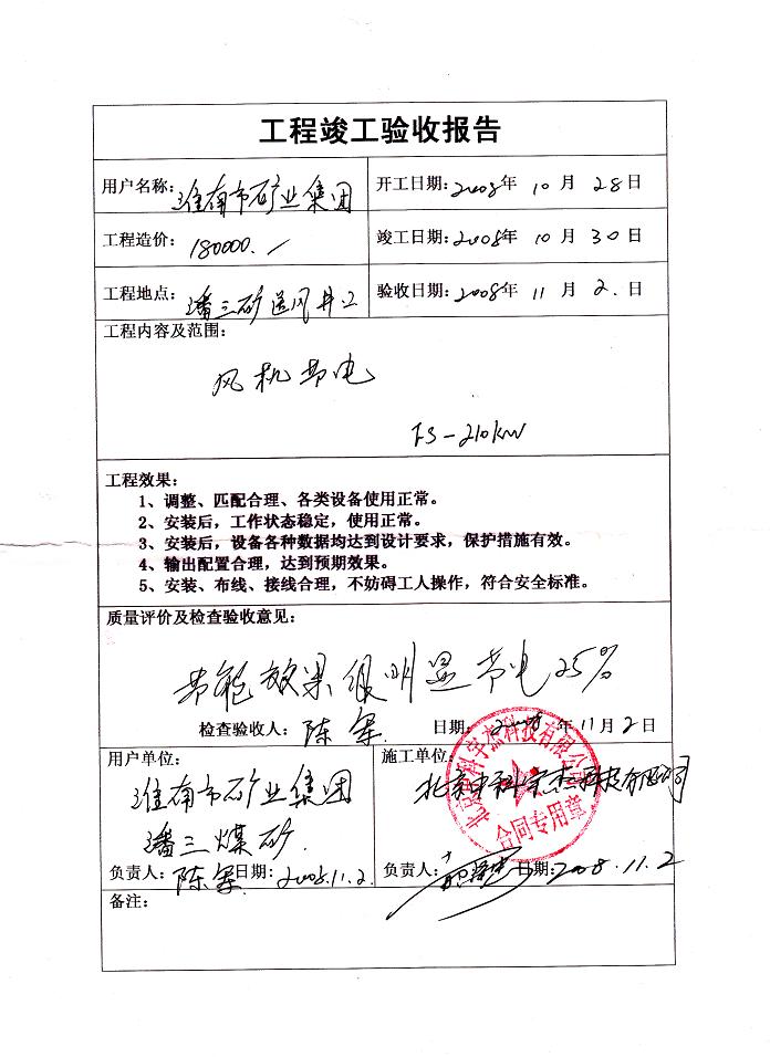 淮南礦業(yè)集團(tuán)從1903年淮南煤礦開(kāi)礦起,已歷盡百年滄桑。2002年以來(lái),企業(yè)抓住天時(shí)、地利、人和的歷史發(fā)展機(jī)遇,鑄就了新的輝煌,成為全國(guó)14個(gè)億噸級(jí)煤炭生產(chǎn)基地、6個(gè)煤電一體化基地之一,是我國(guó)黃河以南最大的新型能源企業(yè)。2010年,位居中國(guó)企業(yè)500強(qiáng)第183位,煤炭、電力、房地產(chǎn)三大主業(yè)規(guī)模居安徽省首位。淮南集團(tuán)對(duì)節(jié)能降耗非常重視,不但加強(qiáng)生產(chǎn)用電管理,增強(qiáng)職工的節(jié)電意識(shí),深挖內(nèi)部節(jié)約潛力,降低電力成本,最大限度的降低電能消耗,還重視主動(dòng)尋求節(jié)能改造的先進(jìn)技術(shù),與中科宇杰一起于2008年進(jìn)行了節(jié)能項(xiàng)目合作。