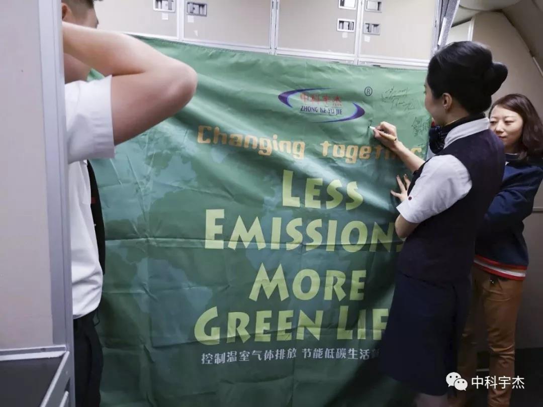?本次公益宣傳愛心傳遞活動得到國航CA877機(jī)組成員大力支持,據(jù)乘務(wù)長介紹國航一直注重綠色低碳,國航機(jī)組成員作為節(jié)能減排的倡導(dǎo)者,保護(hù)環(huán)境,人人有責(zé),通過參與中科宇杰本次活動,呼吁全球共同參與,傳遞正能量,積極參與的溫室氣體減排行動。“Less Emissions More Green Life”活動,并在的綠色宣傳旗上簽字,節(jié)能低碳我先行,共同參與,共同倡導(dǎo),節(jié)能低碳生活新風(fēng)尚。